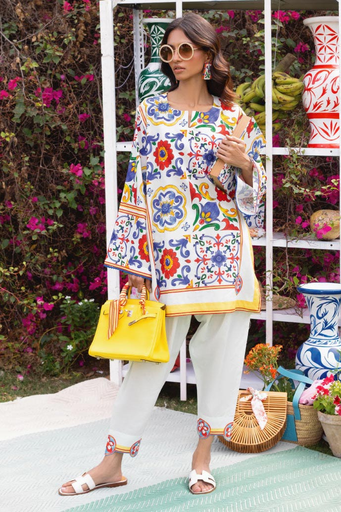 Inspired by the sun-soaked coasts of Italy and blooming courtyard gardens, the Mediterranean Bloom Co-ord Set brings vacation glam to your everyday wardrobe. Featuring hand-drawn tile motifs in bold primary hues, this set is the perfect fusion of comfort and art.
